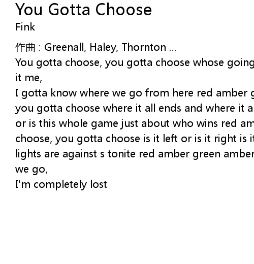 | 歌曲 | You Gotta Choose |