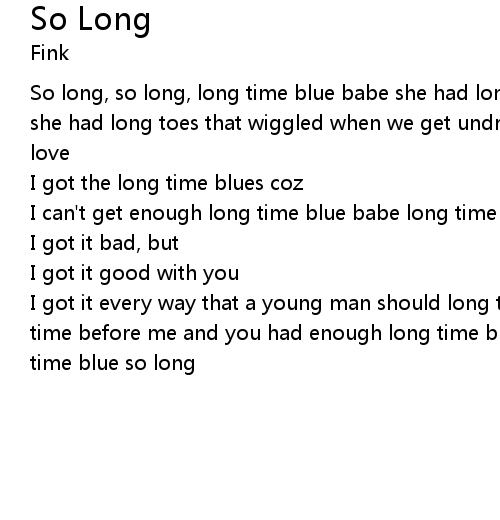 | So long, so long, long time blue babe she had long fingers, and a long caress she had long toes that wiggled when we get undressed long time lovin, long time love | |