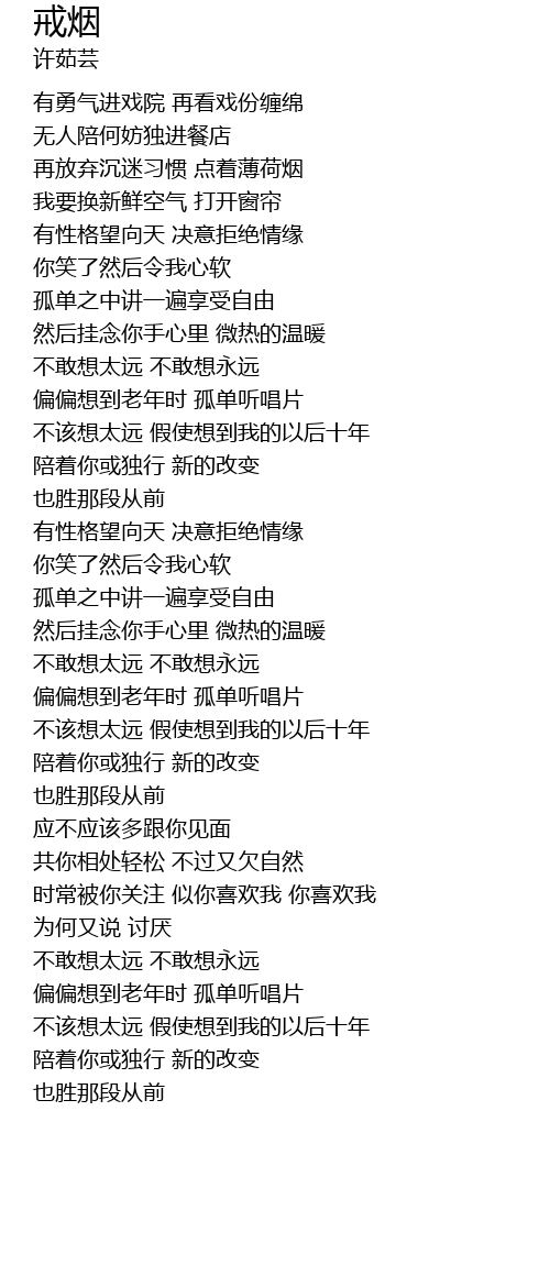 | [00:38.190] | 再放弃沉迷习惯 点着薄荷烟 |