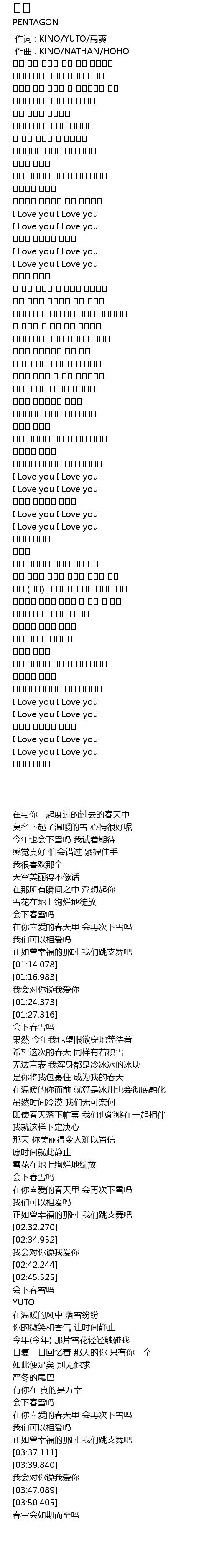 | [03:20.834] | 네가 좋아하는 봄에 또 눈이 올까요 |