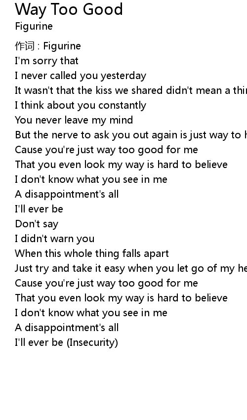 | Cause you're just way too good for me | |