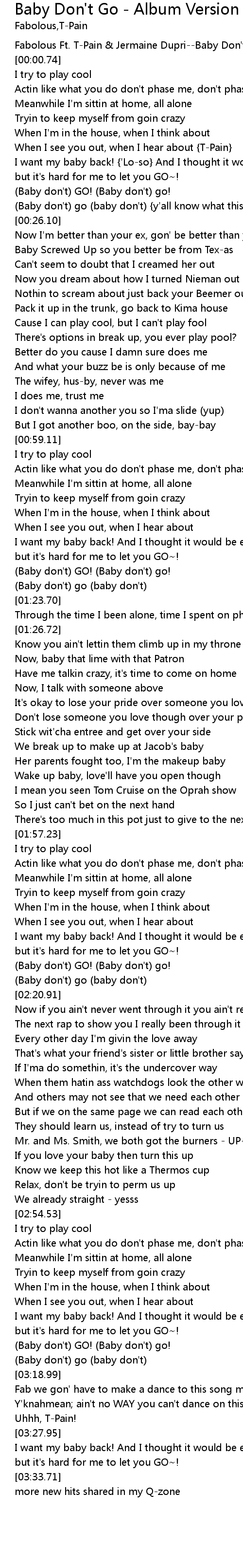 | [00:00.73] | Fabolous Ft. T-Pain & Jermaine Dupri--Baby Don't Go |