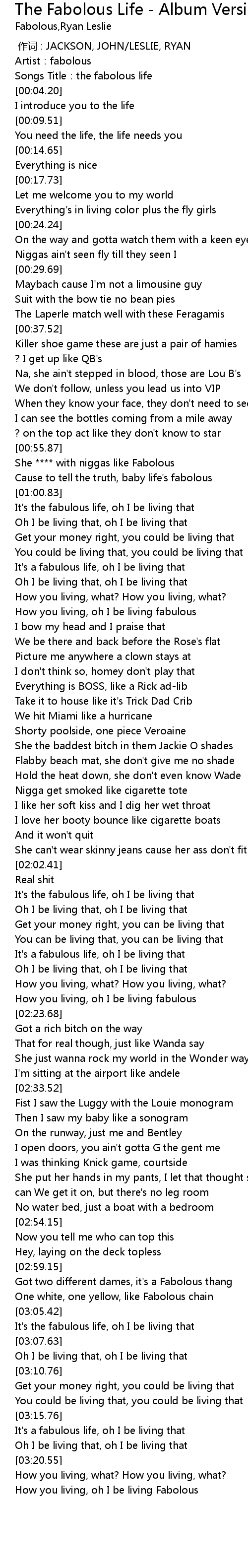 | [00:02.01] | Songs Title:the fabolous life |