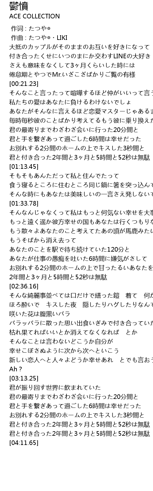 | [04:03.38] | 君と付き合った2年間と3ヶ月と5時間と52秒は無駄 |