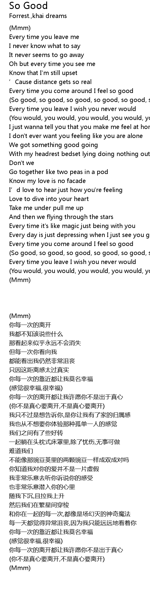 | [02:24.67] | (So good, so good, so good, so good, so good, so good) |