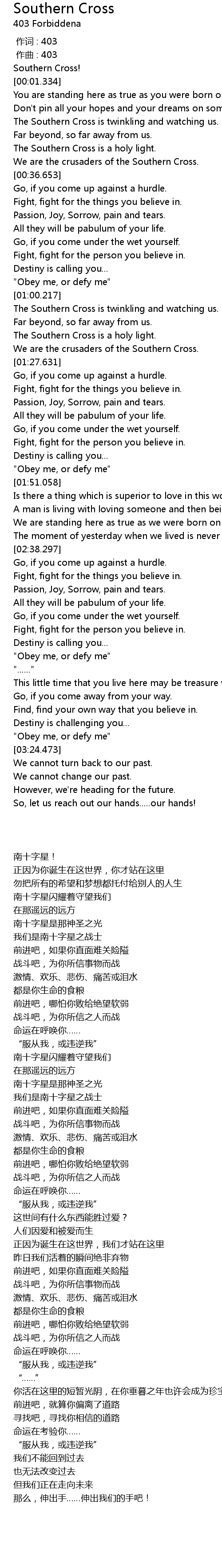 | [00:00.000] | Southern Cross! |