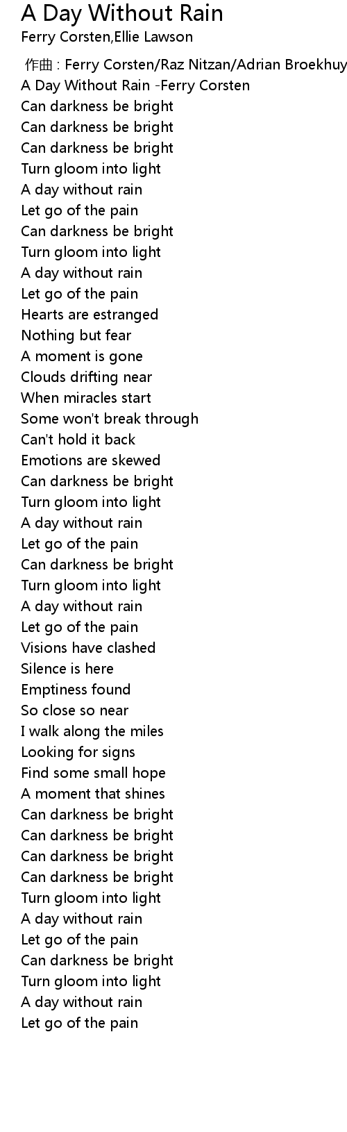 | [03:01.504] | A day without rain |