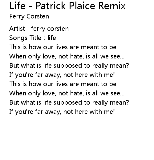 | 歌曲 | Life - Patrick Plaice Remix |