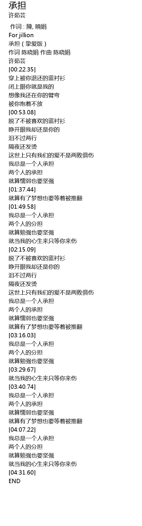 | [00:00.00] | 作词 : 陳, 曉娟 |