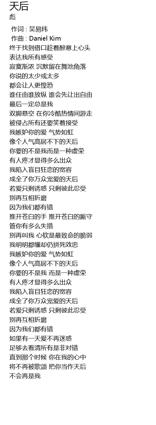 | [01:42.684] | 成全了你万众宠爱的天后 |