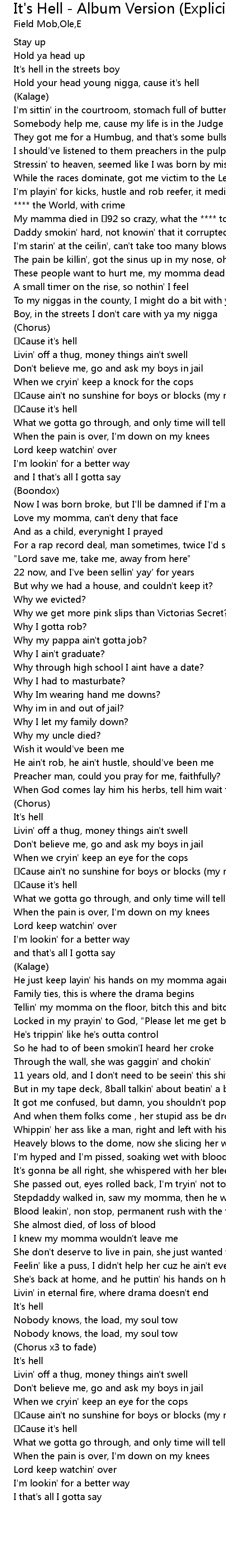 | Tellin' my momma on the floor, bitch this and bitch that | |