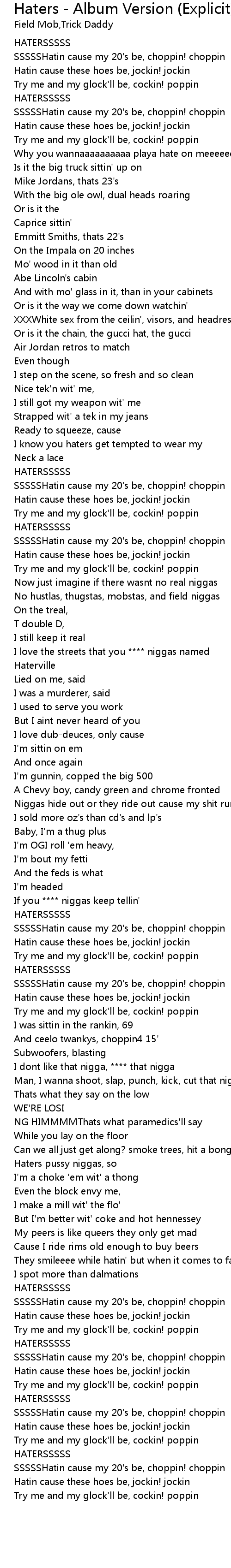 Haters - Album Version (Explicit) 歌词