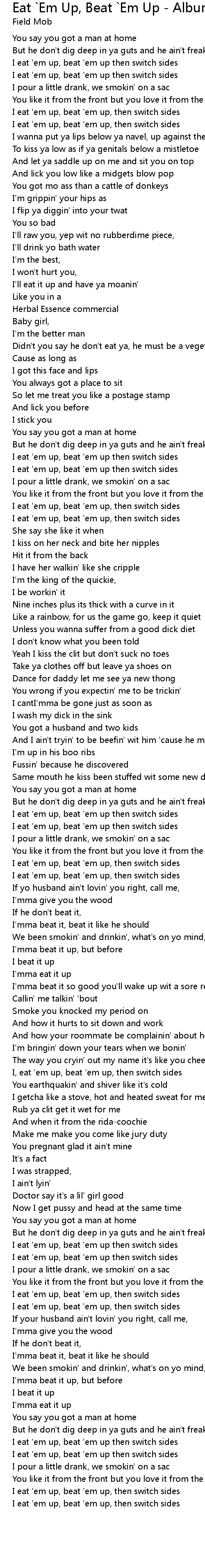 I eat 'em up, beat 'em up then switch sides |