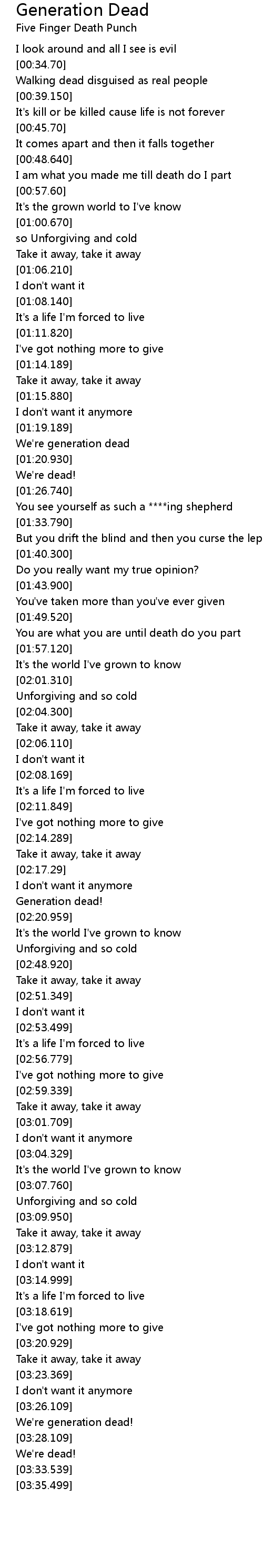 | [03:26.978] | We're generation dead! |