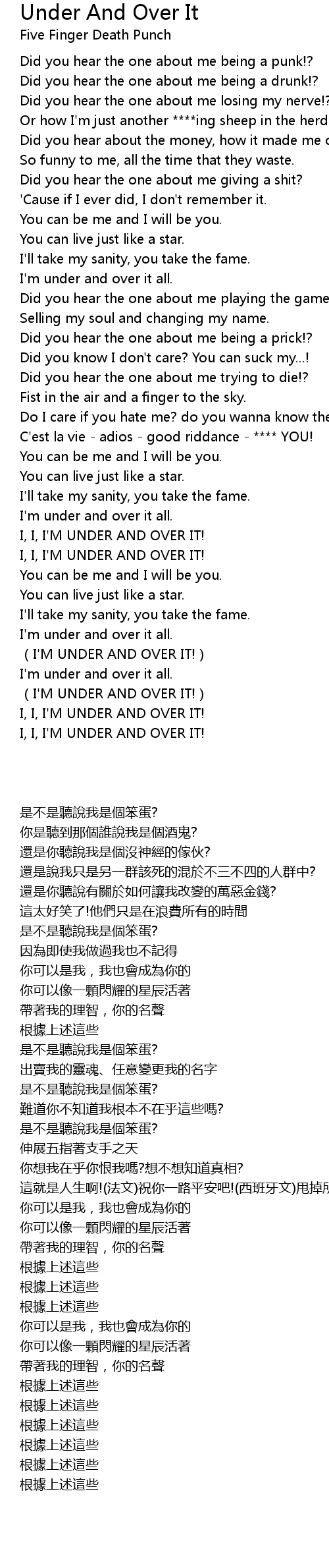 | 歌曲 | Under And Over It |