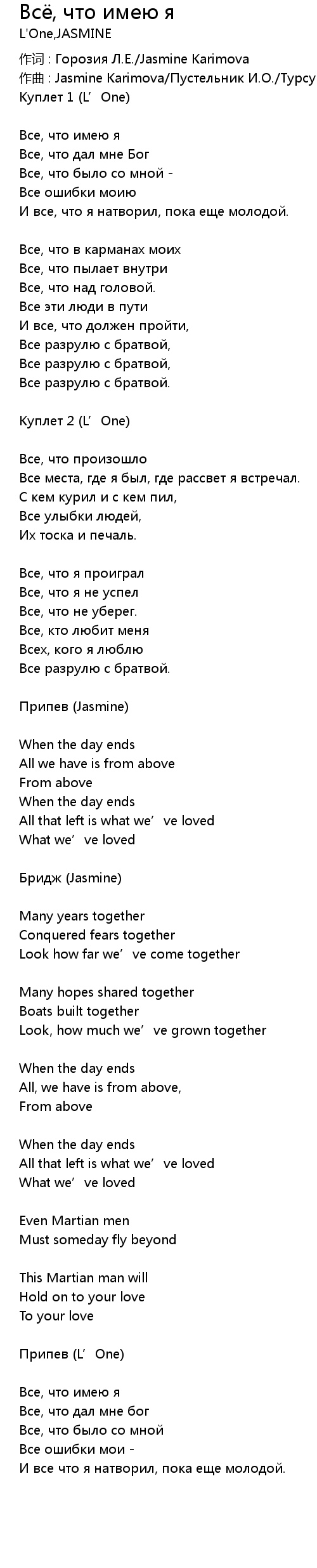 | Куплет 2 (L’One) | |