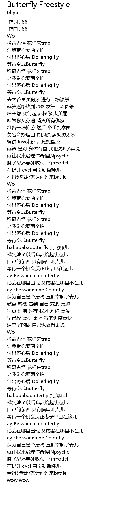 | [00:00.000] | 作词 : 66 |