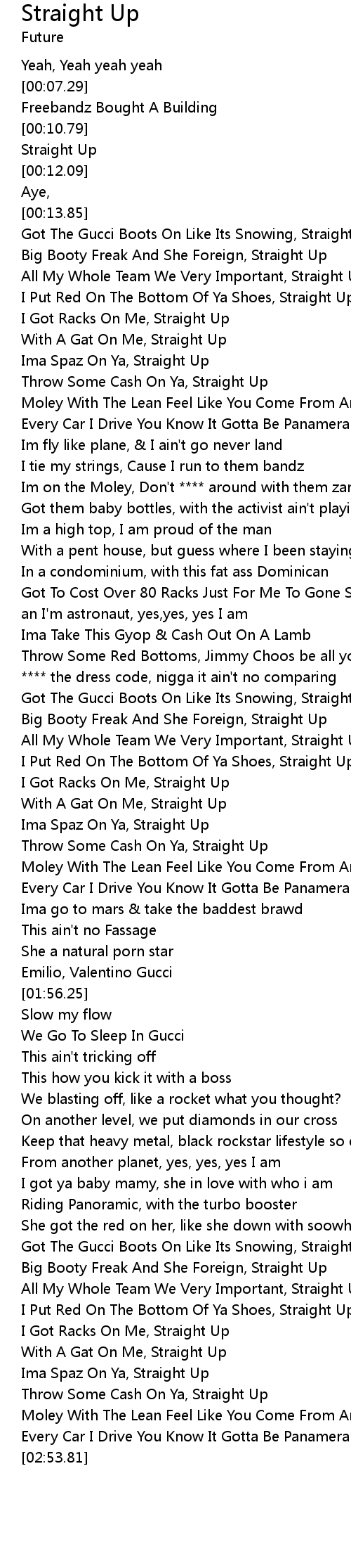 | [02:45.27] | Throw Some Cash On Ya, Straight Up |