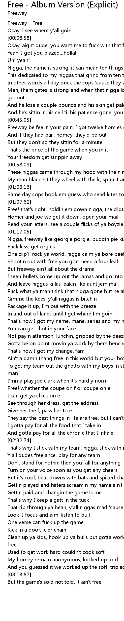 Nigga, freeway like georgie porgie, puddin pie kiss the girl |