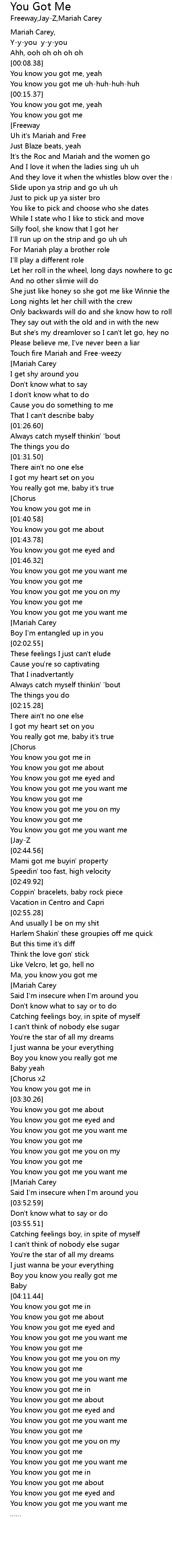 | [01:14.94] | Touch fire Mariah and Free-weezy |