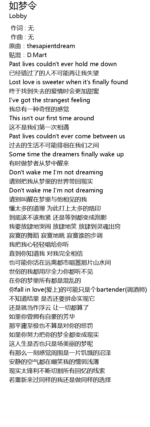 | [00:40.932] | 有时做梦者从梦中醒来 |