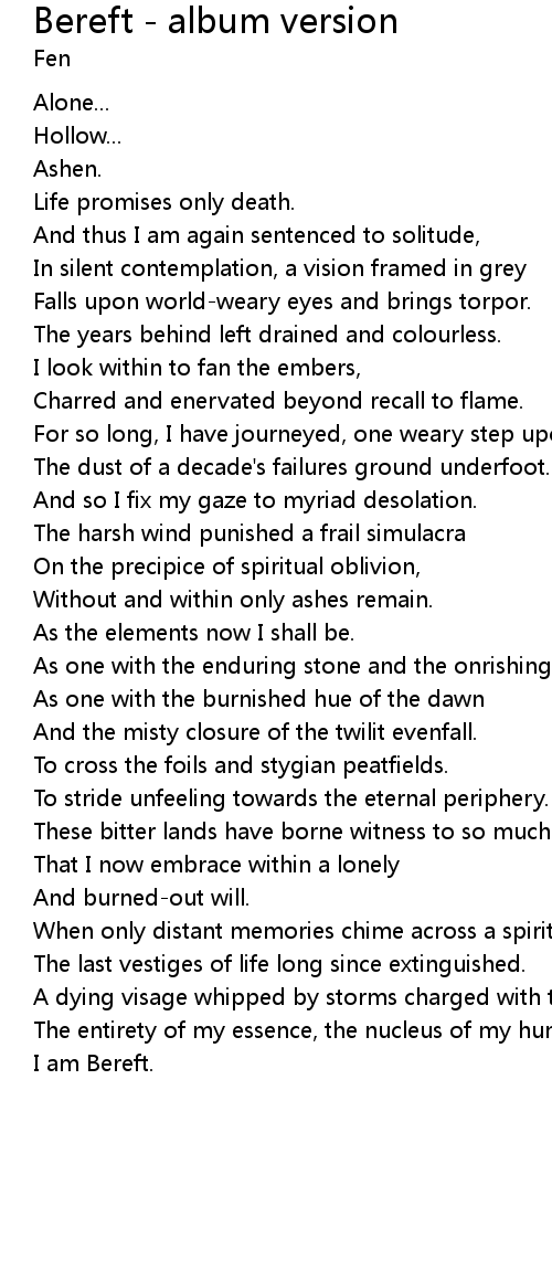 I am Bereft. |