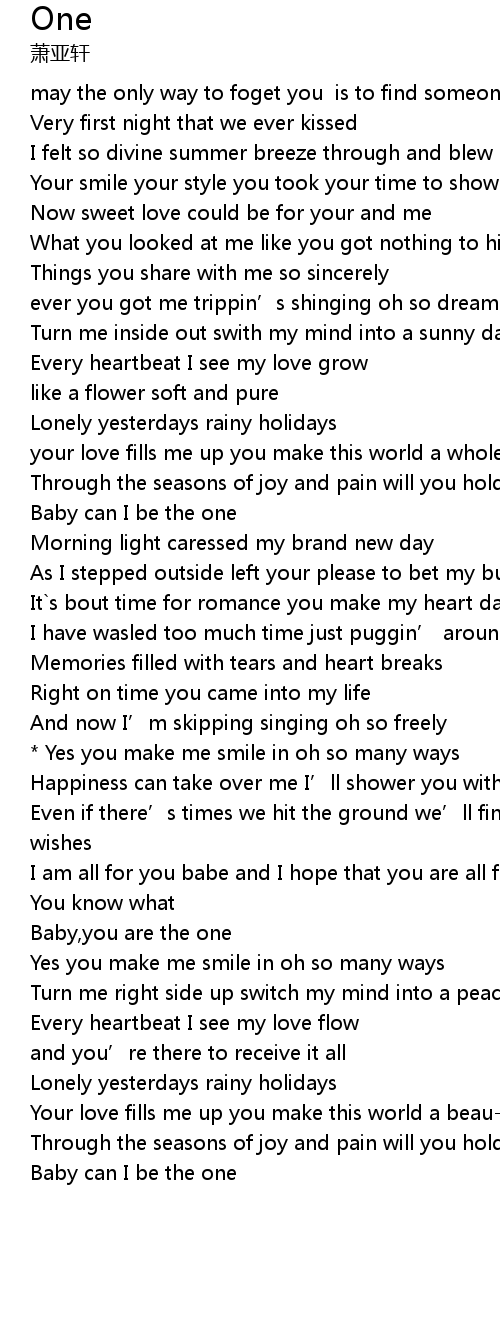 | 歌曲 | One |