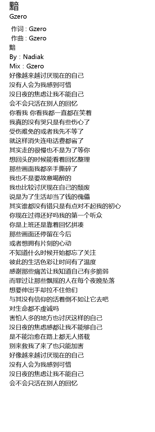 | [01:05.649] | 我也比较讨厌现在自己的颓废 |