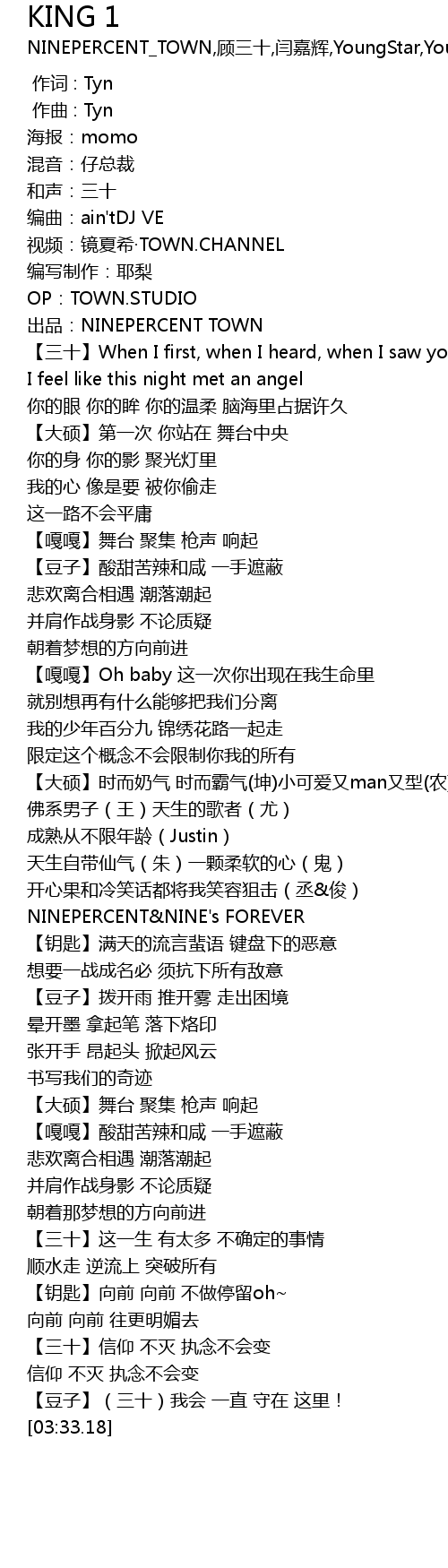 | [00:10.47] | 出品:NINEPERCENT TOWN |