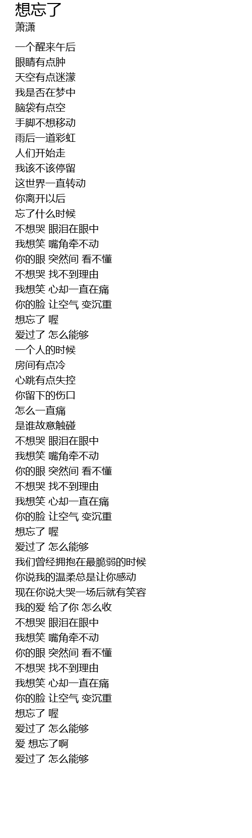 | [04:22.950] | 爱 想忘了啊 |