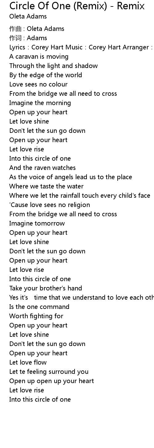 | 歌曲 | Circle Of One (Remix) - Remix |
