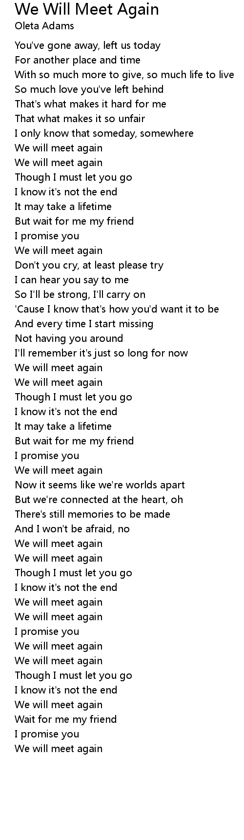We will meet again |