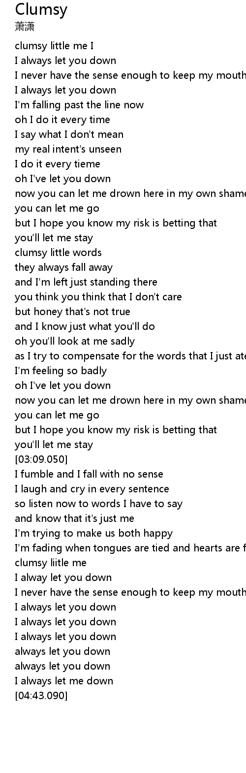 | [01:03.590] | now you can let me drown here in my own shameful tears |