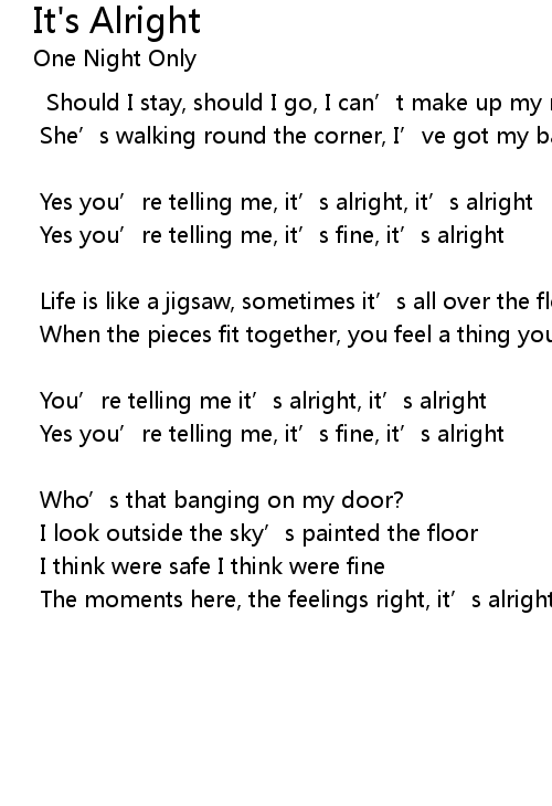 | You' re telling me it' s alright, it' s alright | |