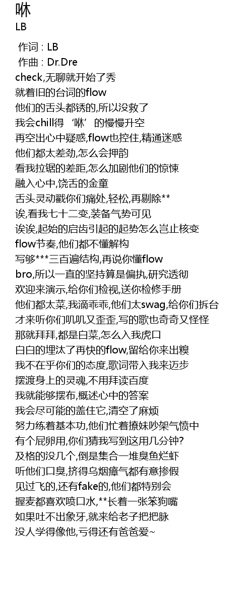 | [00:01.000] | zuò qǔ : Dr. Dre |