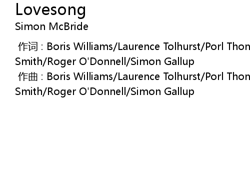 | [00:00.000] | 作词 : Boris Williams/Laurence Tolhurst/Porl Thompson/Robert Smith/Roger O'Donnell/Simon Gallup |