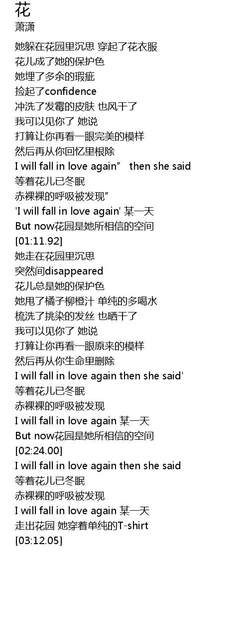 | [03:07.00] | 走出花园 她穿着单纯的T-shirt |
