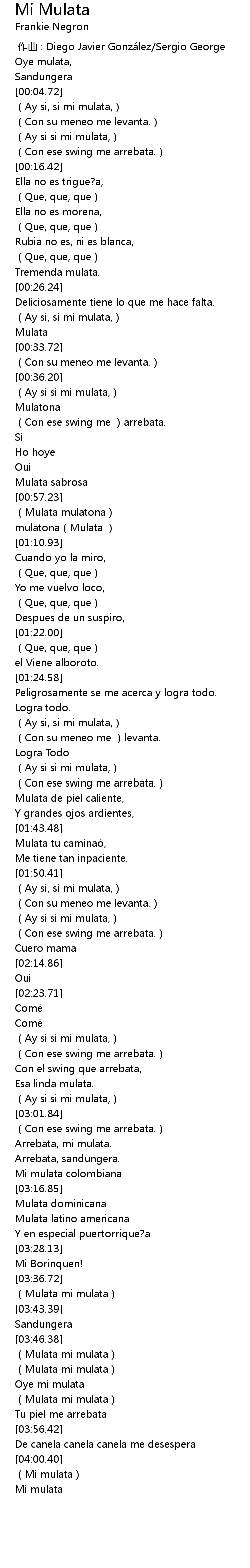 | [04:01.96] | (Mi mulata) |