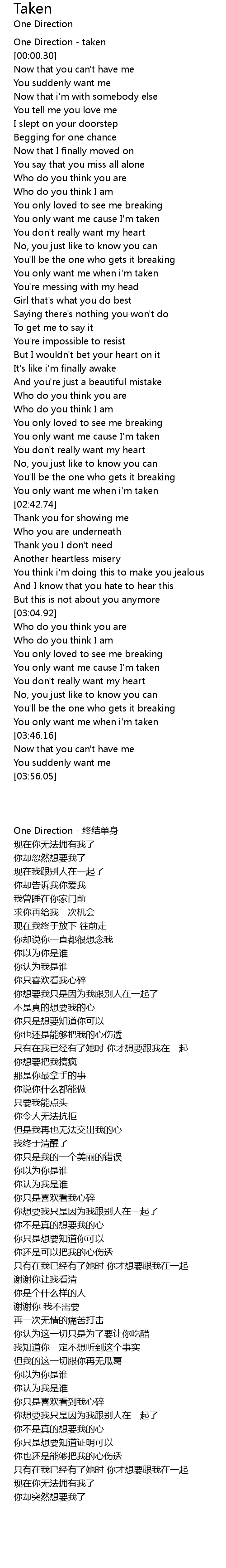 One Direction - taken |