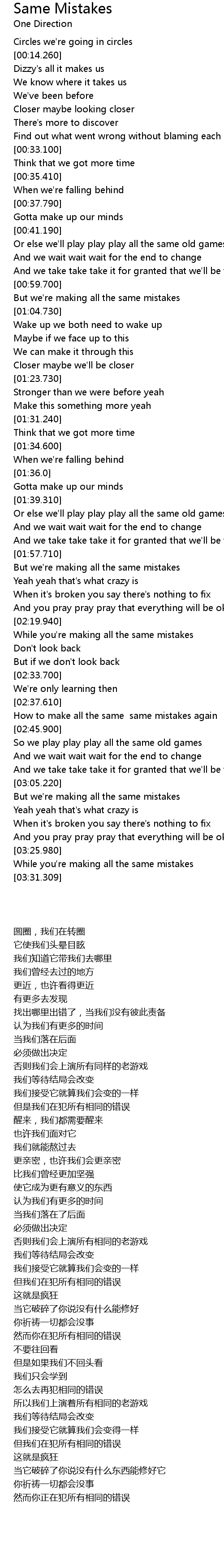 | 歌曲 | Same Mistakes |