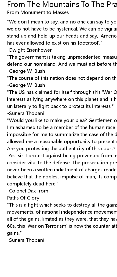 "This is a fight which seeks to destroy all the gains of anti-colonial movements, of national independence movements, national liberation movements, all of the gains, limited as they were, that they have made since the 50s and 60s, this 'War on Terrorism' is now the counter attack to wipe out all of those gains." |