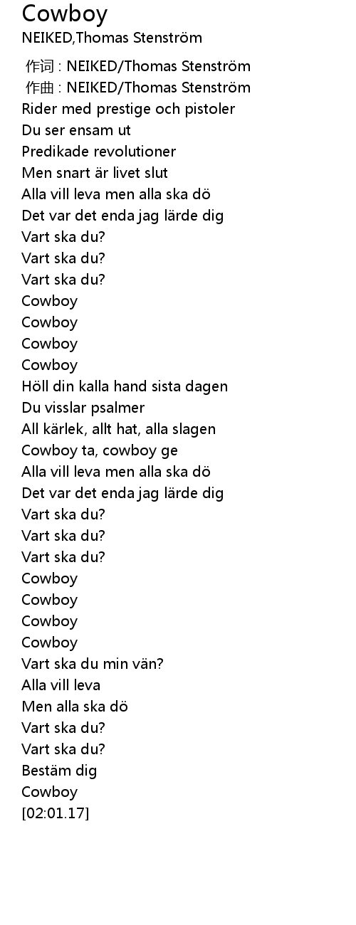 | [01:34.10] | Cowboy |