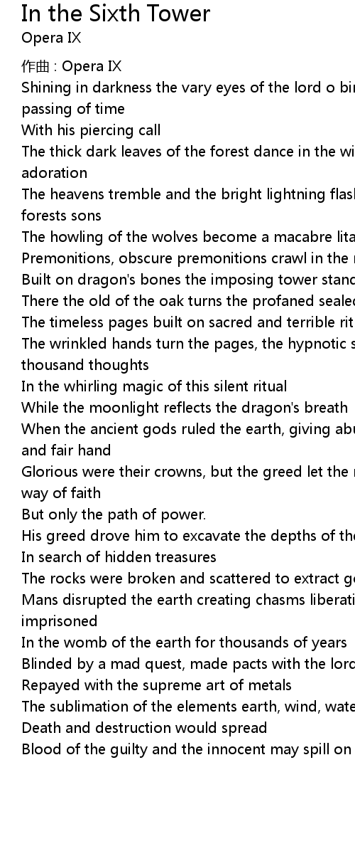 | 歌曲 | In the Sixth Tower |