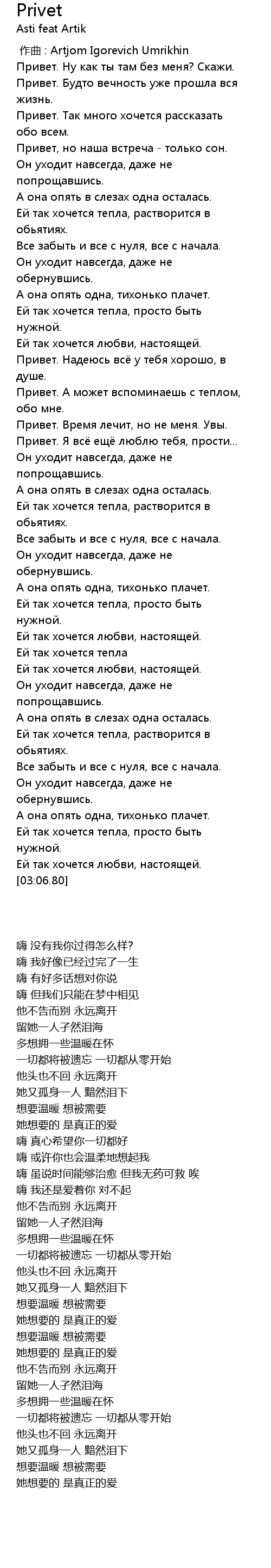 | [01:22.09] | Привет. Надеюсь всё у тебя хорошо, в душе. |