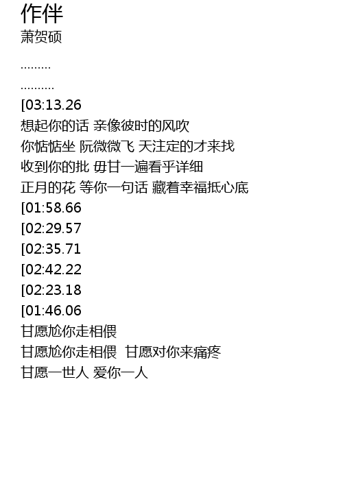 | [03:32.51] | 甘愿尬你走相偎 甘愿对你来痛疼 |