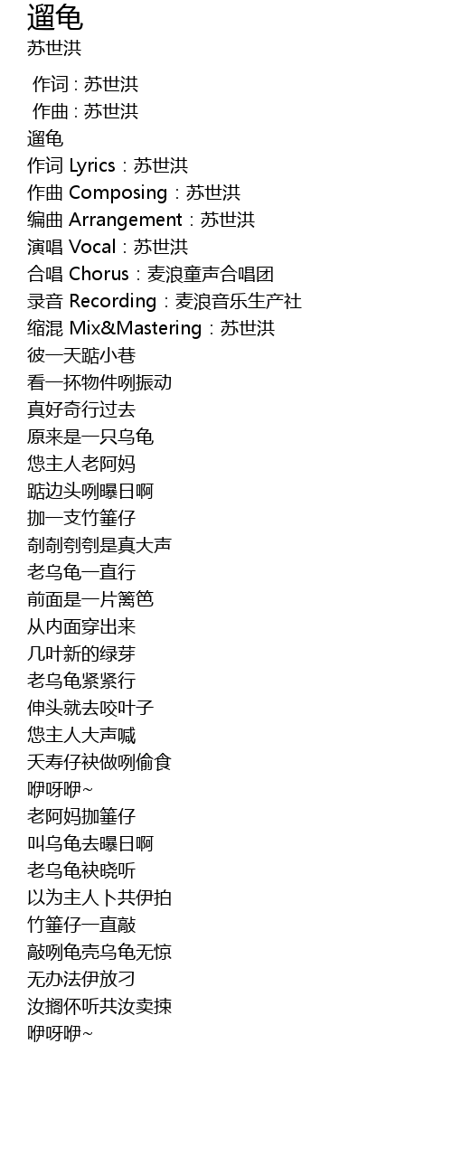| [00:00.01] | 遛龟 |