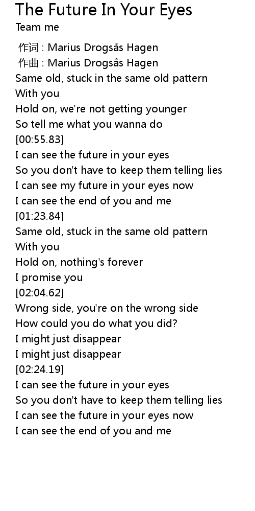 | [01:38.90] | Same old, stuck in the same old pattern |
