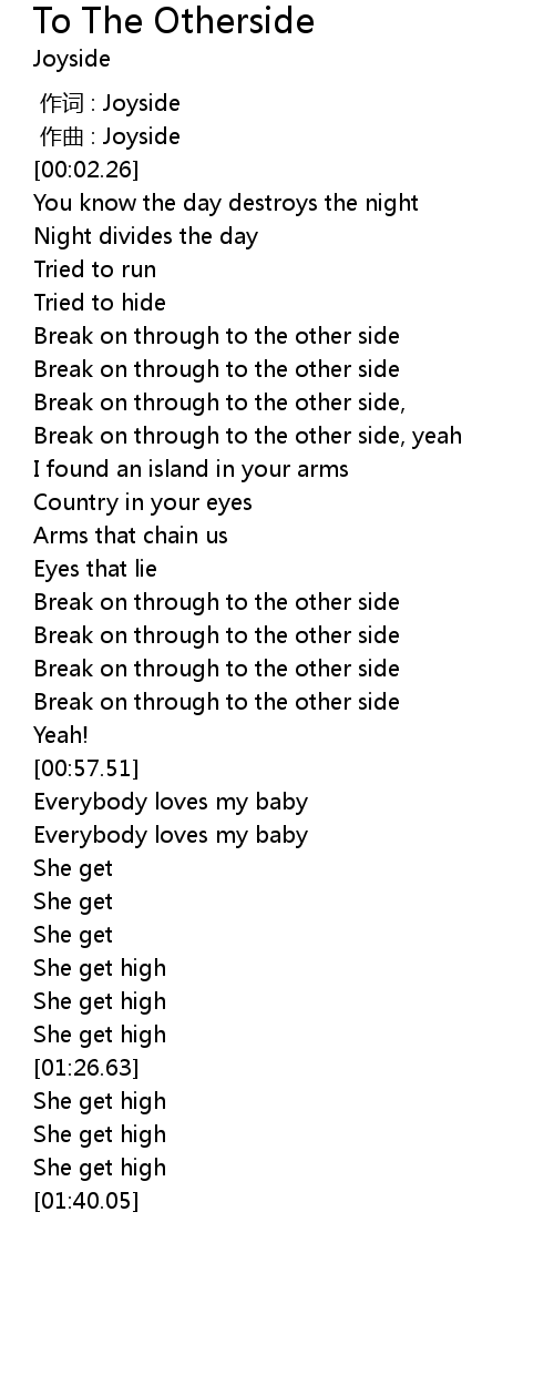| [00:26.35] | Break on through to the other side, yeah |