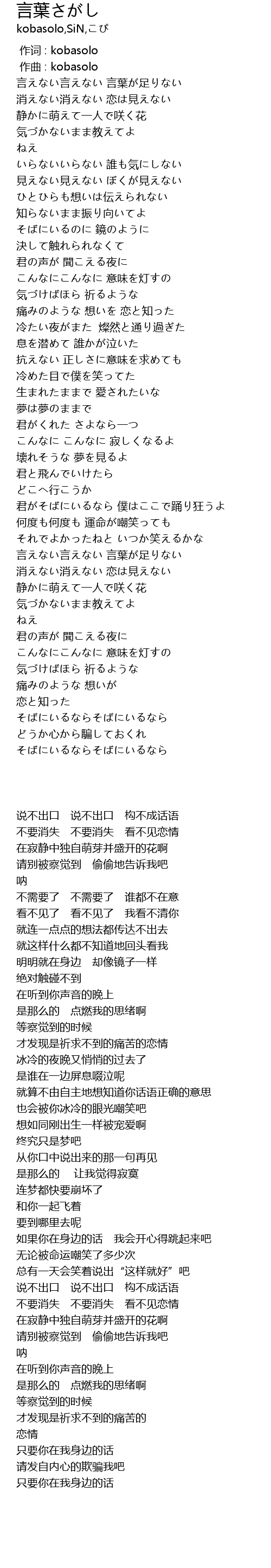 | [00:00.000] | 作词 : kobasolo |