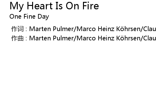 | [00:00.000] | 作曲 : Marten Pulmer/Marco Heinz Köhrsen/Claus Hendrik Burkhard |